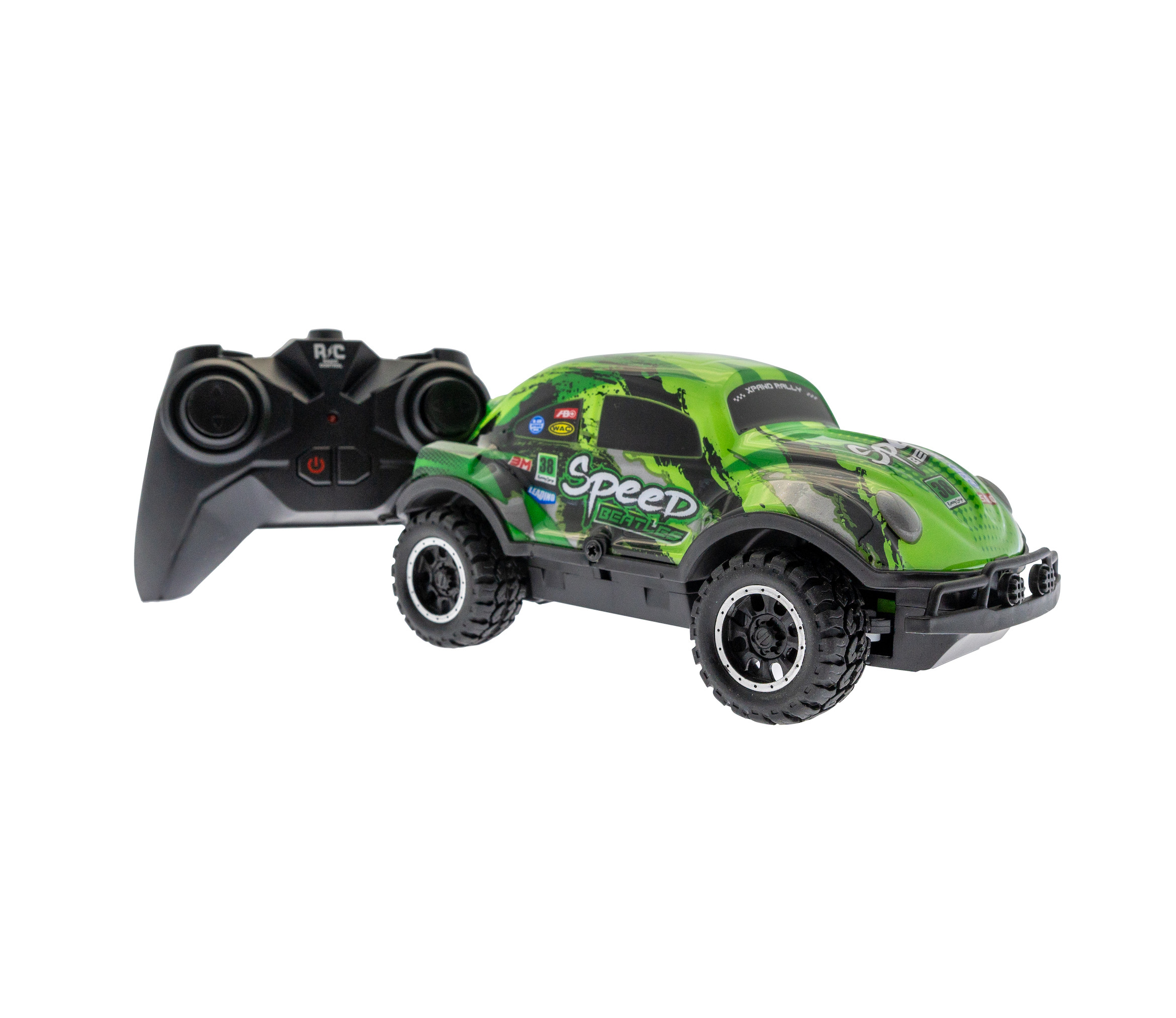 Ta kontroll över vägarna (eller vardagsrummet) med Speed Beatles – den perfekta radiostyrda bilen för alla åldrar, med blinkande lampor i karossen för extra körglädje!