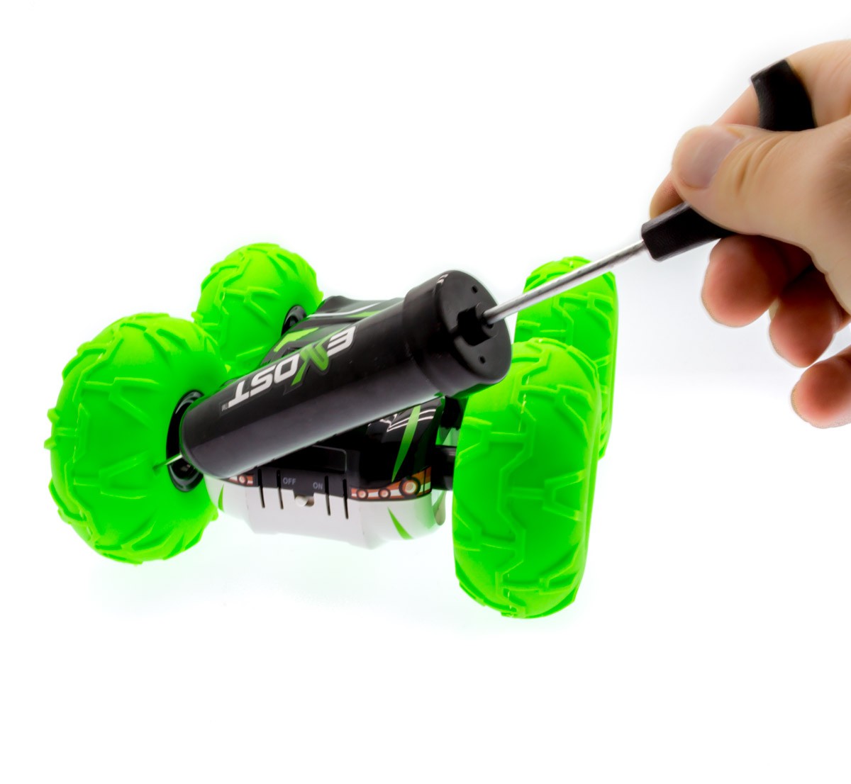 Hoppa, studsa & gör 360 spins med denna brutala Stuntbil från Silverlit. 360 Tornado kan köra på båda sidorna så man alltid tar sig fram. Toppfarten är på hela 15 Km/h och har kraftfulla motorer som tar sig fram överallt.